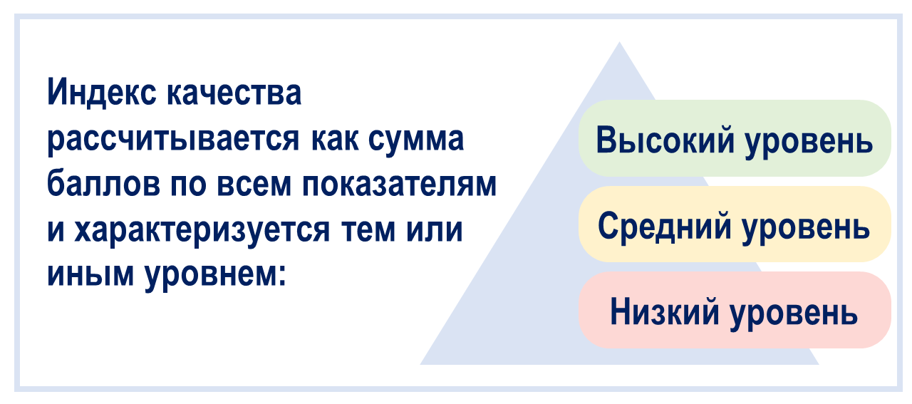 Индекс качества – это комплексный показатель образовательной деятельности, отражающий качество подготовки обучающихся и условия реализации общеобразовательных программ в соответствии с требованиями государства и потребностями граждан.